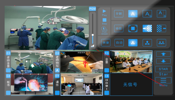 可接入全景攝像機(jī),特寫攝像機(jī)可預(yù)先設(shè)置2-8個(gè)機(jī)位,在實(shí)訓(xùn)教學(xué)中演示操作細(xì)節(jié)時(shí),可調(diào)用相應(yīng)機(jī)位高清拍攝教學(xué)對(duì)象操作的全部過程,并可將拍攝畫面無損投放至實(shí)訓(xùn)教室的大屏展示,實(shí)現(xiàn)實(shí)訓(xùn)操作細(xì)節(jié)的高清呈現(xiàn)。
